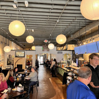 “ A happening place, bustling on a Tuesday morning. Had their breakfast burrito with egg, black beans, corn and sausage on a whole wheat tortilla (7). It was yummy! They serve breakfast all day. Lots of seating, including high tables, low tables, couches and outdoors. Music is pretty loud, otherwise, it would be a good place to work online. Service was friendly and fast. Nice art. Photo show. ”